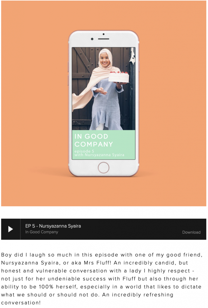 Content creator, Aida Azlin, is known for her free motivational weekly newsletters subscribed by over 60,000 women all over the world, as well as her YouTube videos of which some had gone viral. When she launched her podcast, In Good Company earlier this year, as part of a bigger and more exclusive content package called AA Plus, it came with a minimal monthly fee.